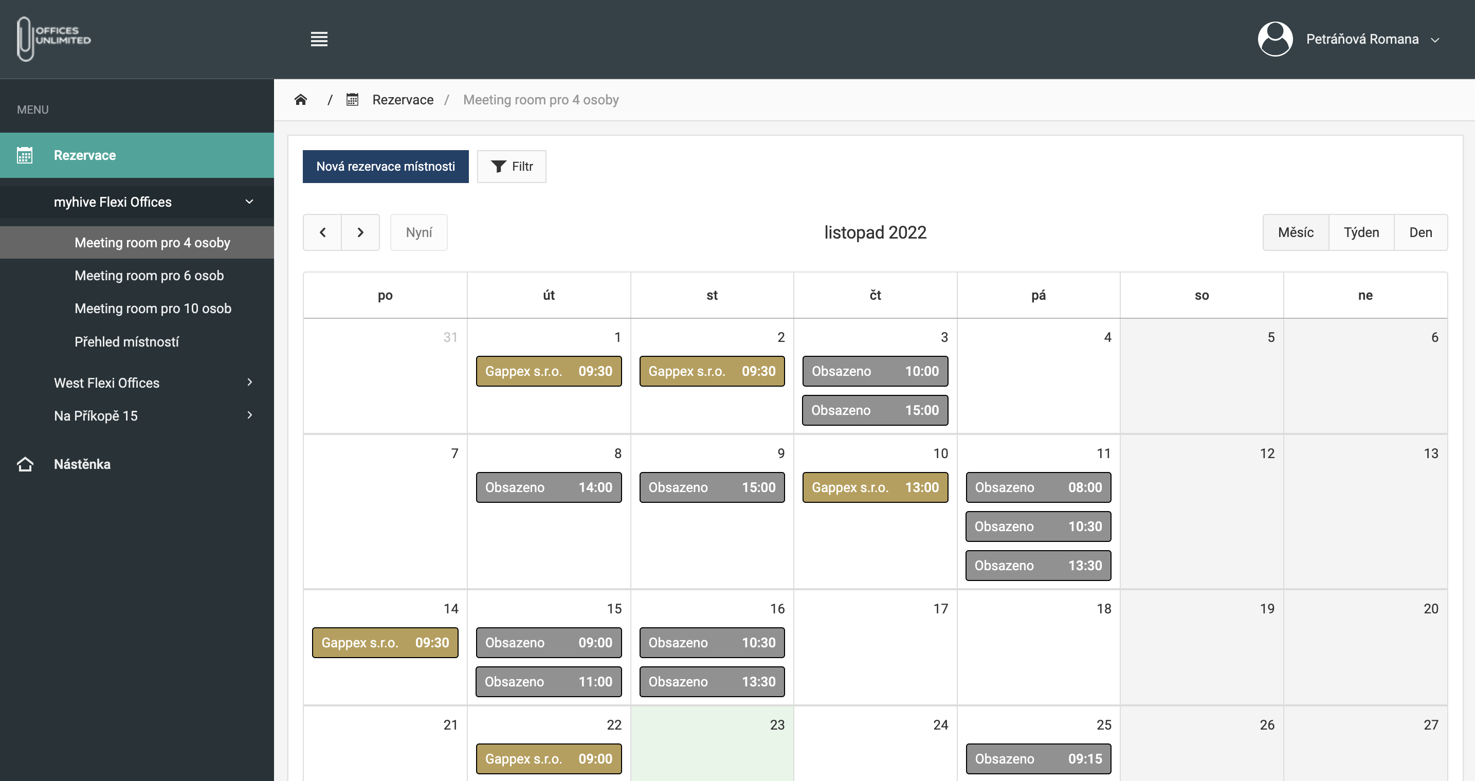 „Rezervace zasedacích místností jsme řešili prostřednictvím přímého kontaktu nájemce – recepční, což má svá omezení především v situacích, kdy nájemce má na telefonu klienta a při domlouvání schůzky potřebuje on-line vidět, v jaký čas je zasedací místnost volná.“ popisuje situaci před spoluprací s Gappexem Marie Kantorová, office manager, Offices Unlimited. „Osobnímu kontaktu s nájemci dáváme velkou důležitost, ale byli jsme si vědomi, že v roce 2022 je digitalizace zrovna u takového procesu nutná.“